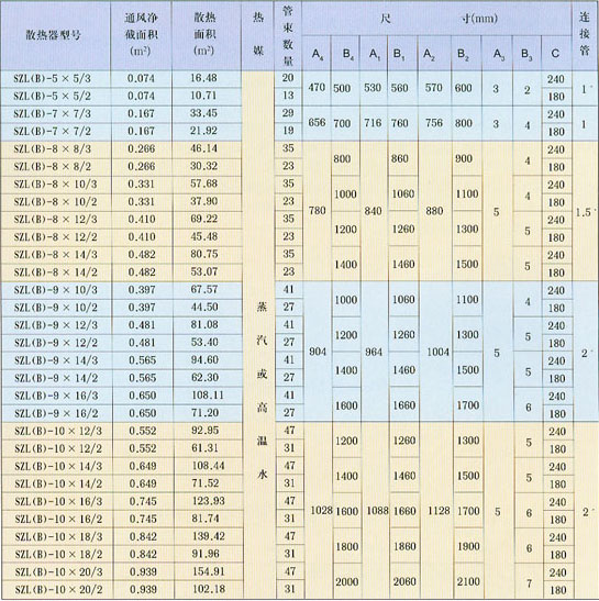 SZL(B)型空氣熱交換器(散熱器)基本參數(shù)表