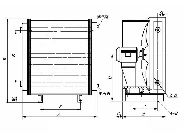 FL型空氣冷卻器是液壓系統(tǒng)常用的一種空氣熱交換器。采用環(huán)境空氣作為冷卻源,用來冷卻管內(nèi)熱油,屬于風(fēng)冷式空氣冷卻器,以“風(fēng)冷”的第一個(gè)字母命名,以換熱面積作為后綴。如FL-5,即表示該型號(hào)為風(fēng)冷形式,換熱面積為5平方米。